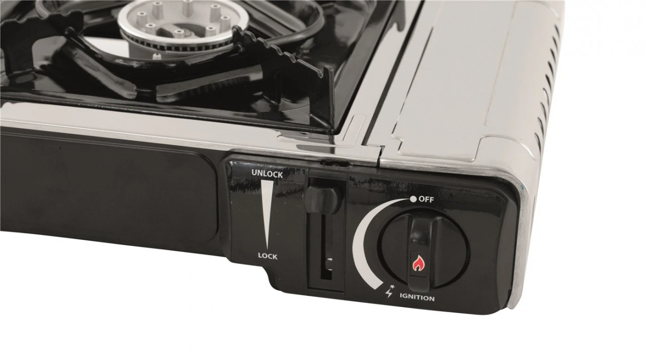 Mit dem Outwell Appetizer Solo Gaskocher kannst Du ganz einfach Speise zubereiten oder aufwärmen. Dank seines robusten Reisebehälters ist er Dein idealer Campingbegleiter. Er lässt sich auch als Zweitgrill bis zu seinem Einsatz platzsparend im Regal verstauen. Zu den Ausstattungsmerkmalen des Appetizer Solo gehören ein eingebautes Fach für die Gaskartusche, rutschfeste Gummifüße und ein Drehschalter für eine automatische Piezo-Zündung. Die verwendete MSF-1A-Butan-Kartusche ist nicht im Lieferumfang enthalten.