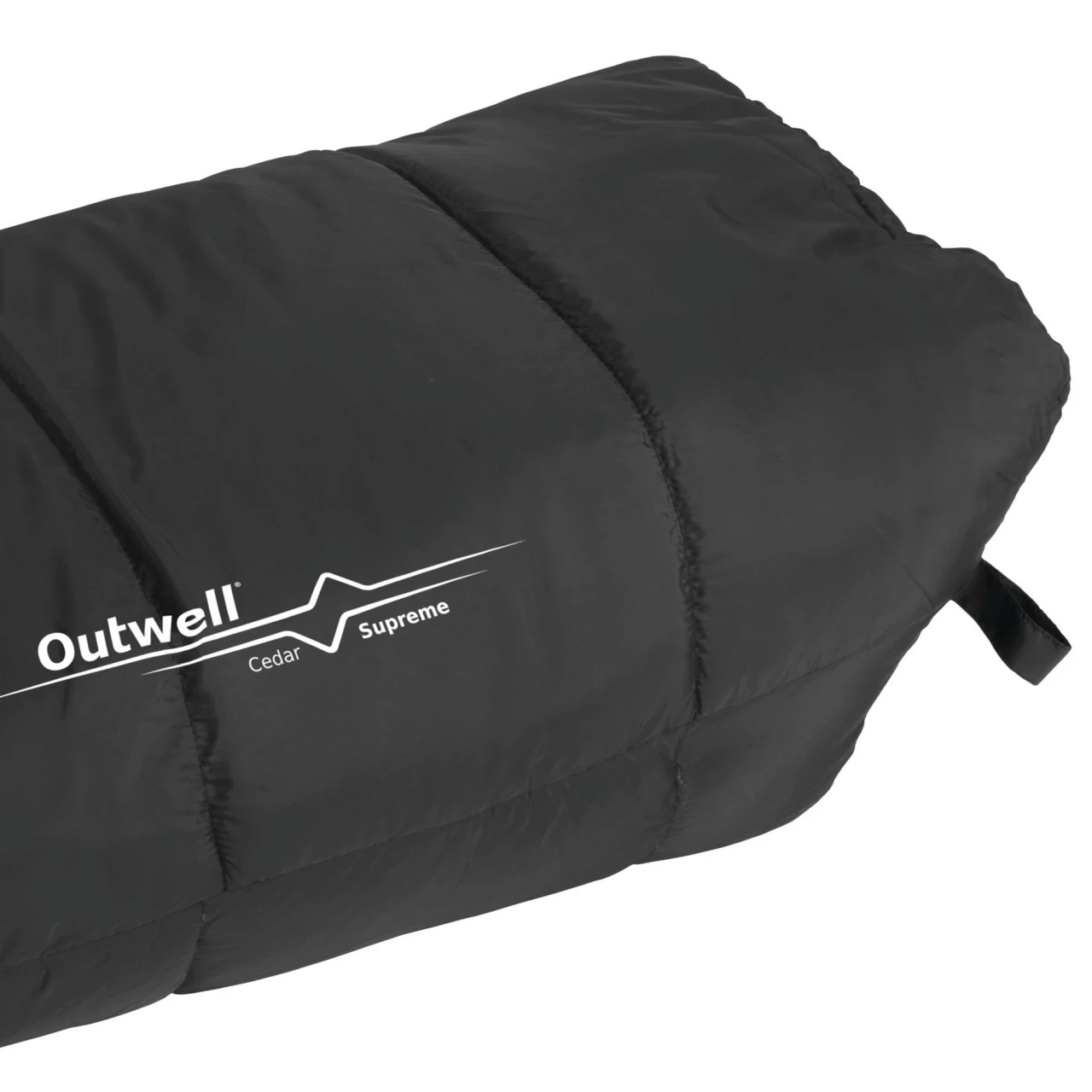Der Outwell Cedar Supreme ist ein 3-4 Jahreszeitenschlafsack mit einer silikonbeschichteten Hohlfaser-Füllung, die für eine optimale Wärme und Isolation sorgt. Durchgehende, isolierte Reißverschlussabdeckung, isolierter Wärmekragen, Fußsack in Haiflossenform, 3D Mumienkapuze und eine an die Körperkontur angepasste Schlafsackform sind weitere Features, die dafür sorgen, dass das Wärme-Gewicht-Verhältnis optimal ausgenutzt wird. Kapuzenkordelzüge in verschiedenen Stärken ermöglichen ein einfaches Anpassen mit nur einem Griff. Mit dem hochwertigen Zwei-Wege-Reißverschluss kann man außerdem ganz einfach für eine leichte Belüftung im unteren Bereich des Schlafsacks sorgen. Mit dem, im Lieferumfang enthaltenen Kompressions-Packsack, kann man den Schlafsack einfach und klein verpacken.