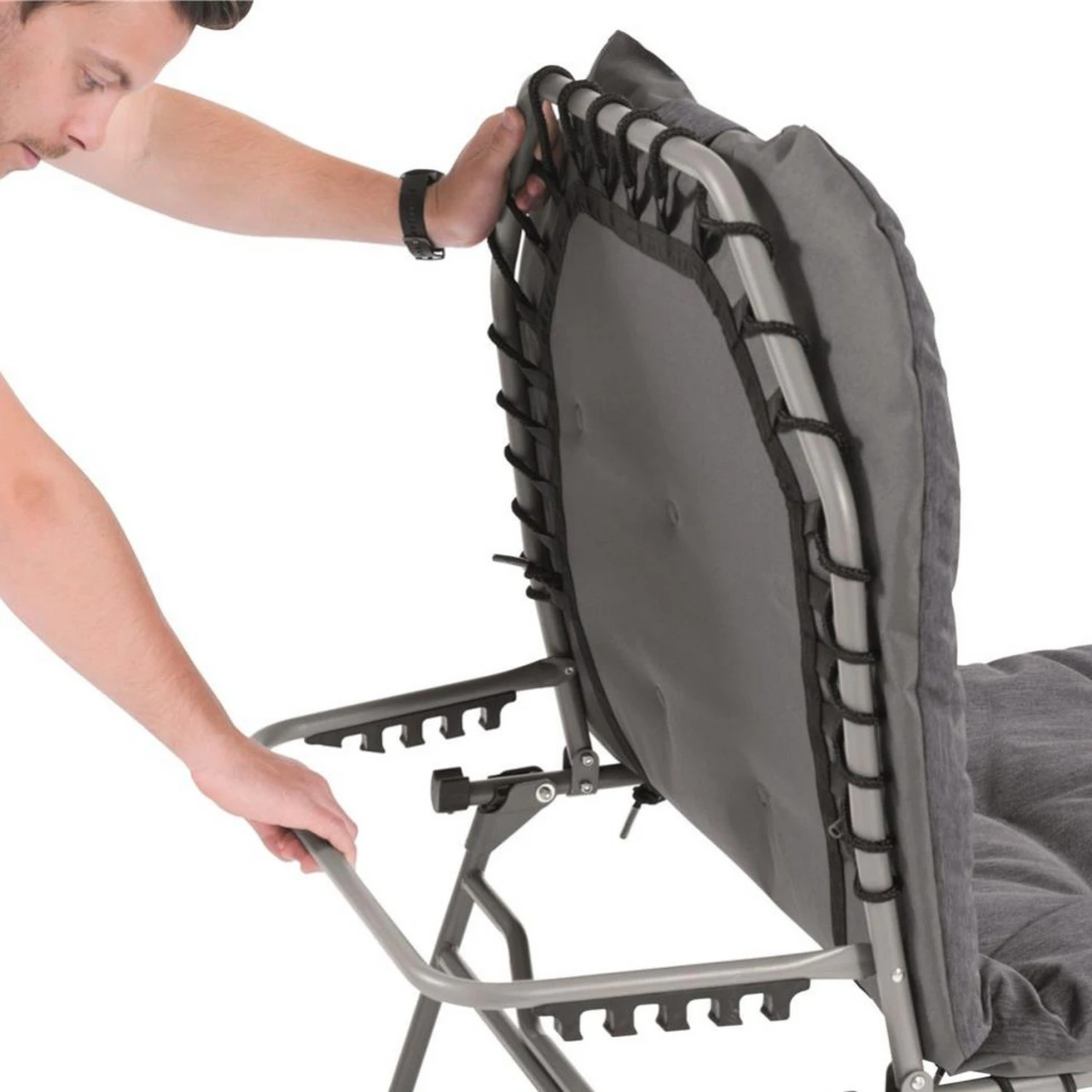 Die Outwell Fontana Lake Campingliege unterstützt Dich dabei in Deinem Urlaub zu entspannen. Die dicke, durchgehende Polsterung sorgt für guute Isolierung und trägt zu einem angenehmen Liegegefühl bei. Die abnehmbare Kopfstütze kann auch als Kissen verwendet werden. Das Rückenteil kann in vier Positionen verstellt werden und ein Anti-Kipp-Bein am Fußende sorgt für Stabilität beim Ein – und Aussteigen. Die Füße sind beweglich und verbessern somit die Stabilität auf unebenem Boden. Für einen unkomplizierten Transport sorgt ein verstellbarer Gurt.
